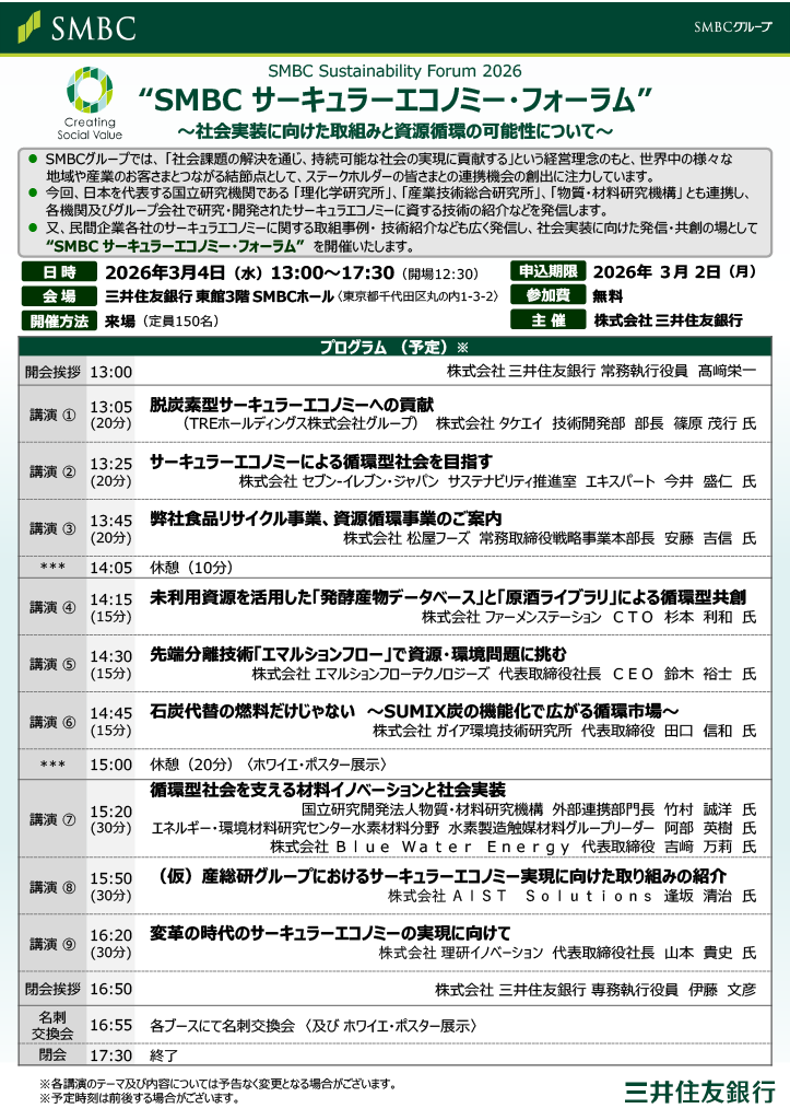 当社は、SMBCグループ主催の「SMBCサーキュラーエコノミー・フォーラム」に講演者として参加いたしました。